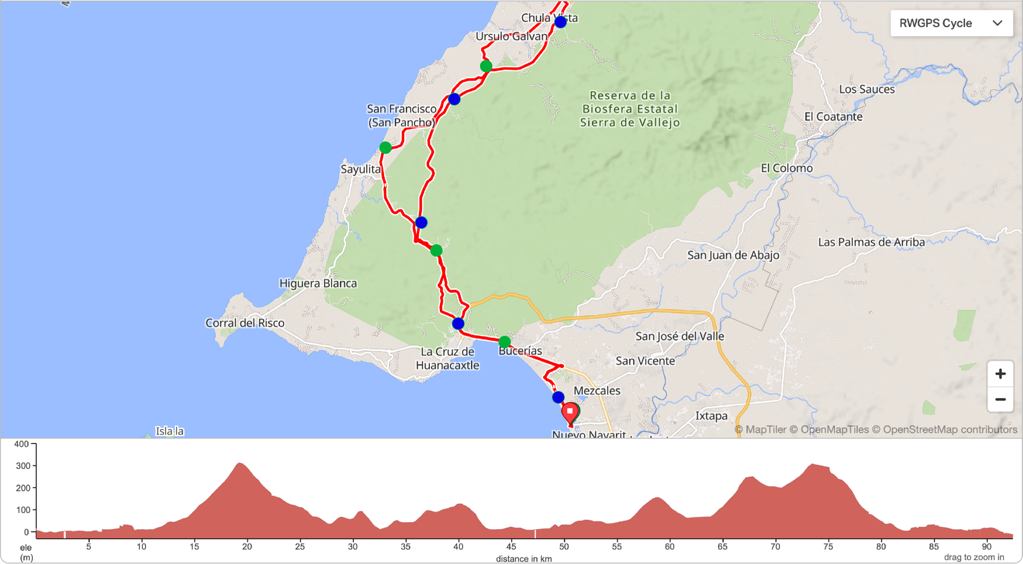 Start/End point: The big red pin at Nuevo Nayarit.