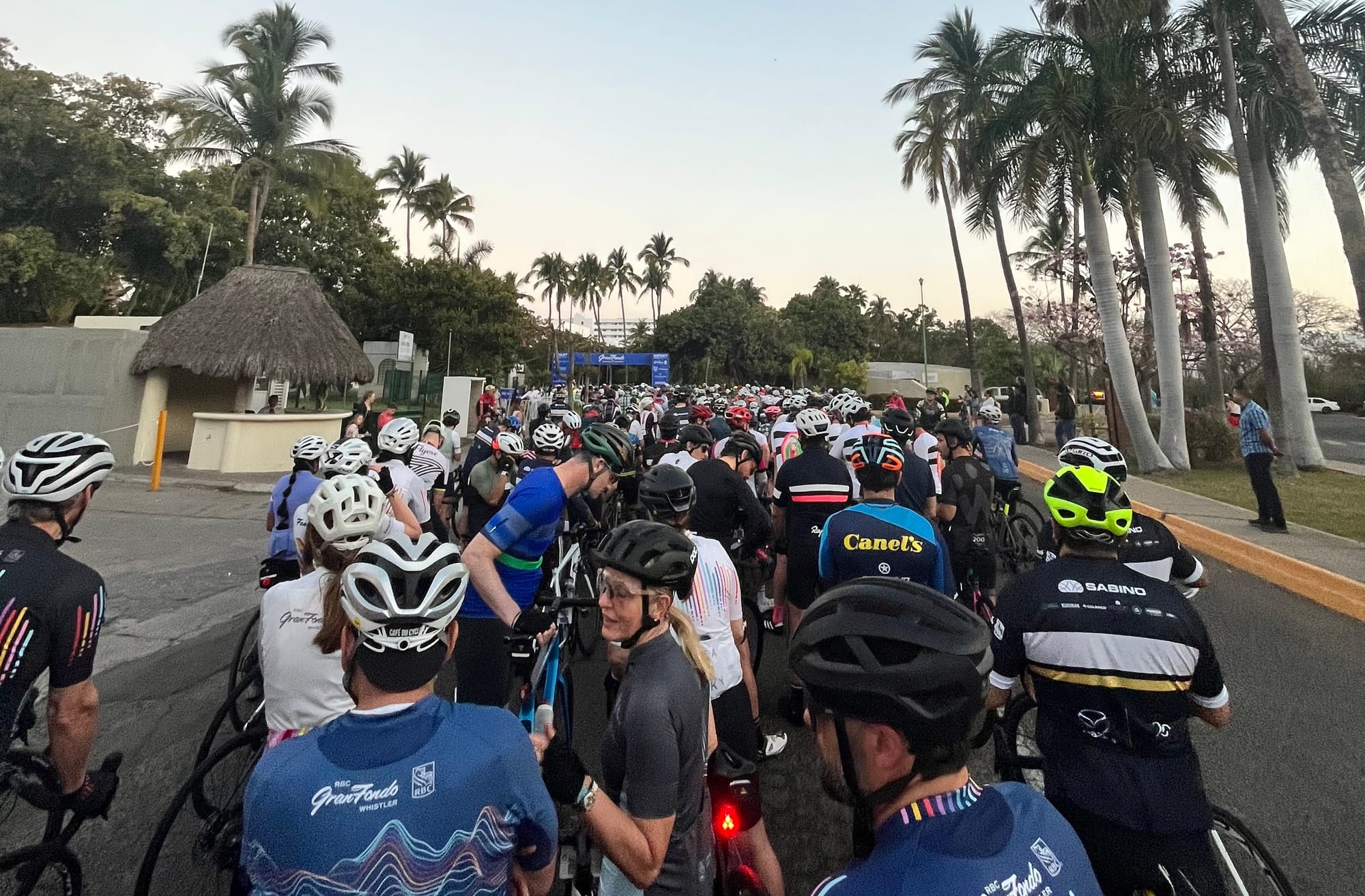 About 500 cyclists rolled in at sunrise for a 6:45 am start for the first-ever cycling event like this in this region of Mexico - Gran Fondo Riviera Nayarit. The sea breeze was cool, the energy electric. Some folks looked so ready to go, while some were still yawning, probably questioning their life choices. I found my gang — Cathy and I had shared our locations on Find My Friends, which was clutch in the crowd of 500 lycra-clad humans.