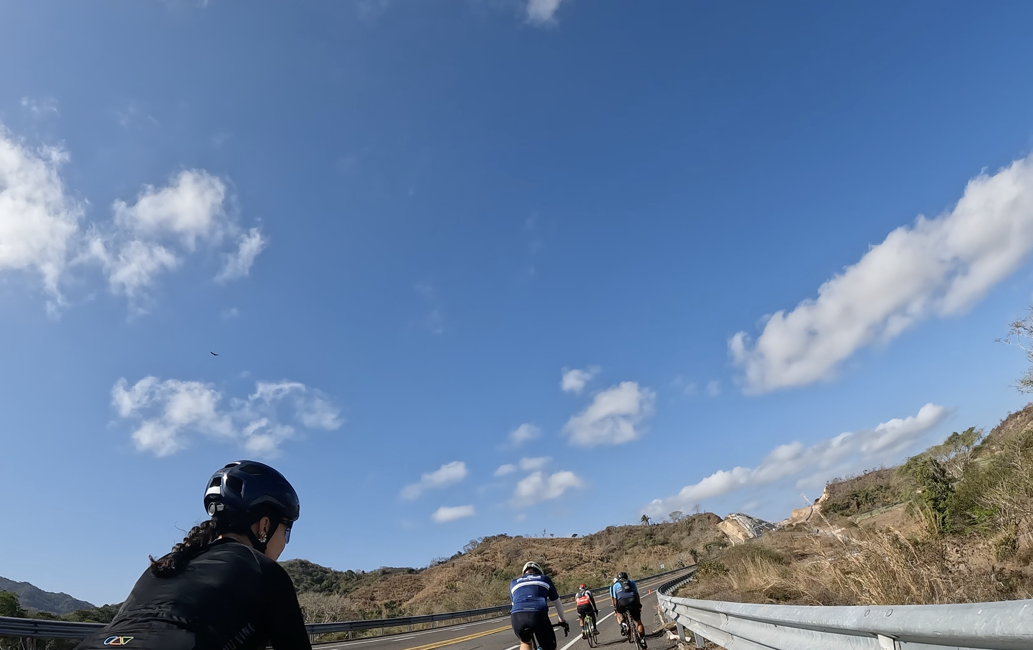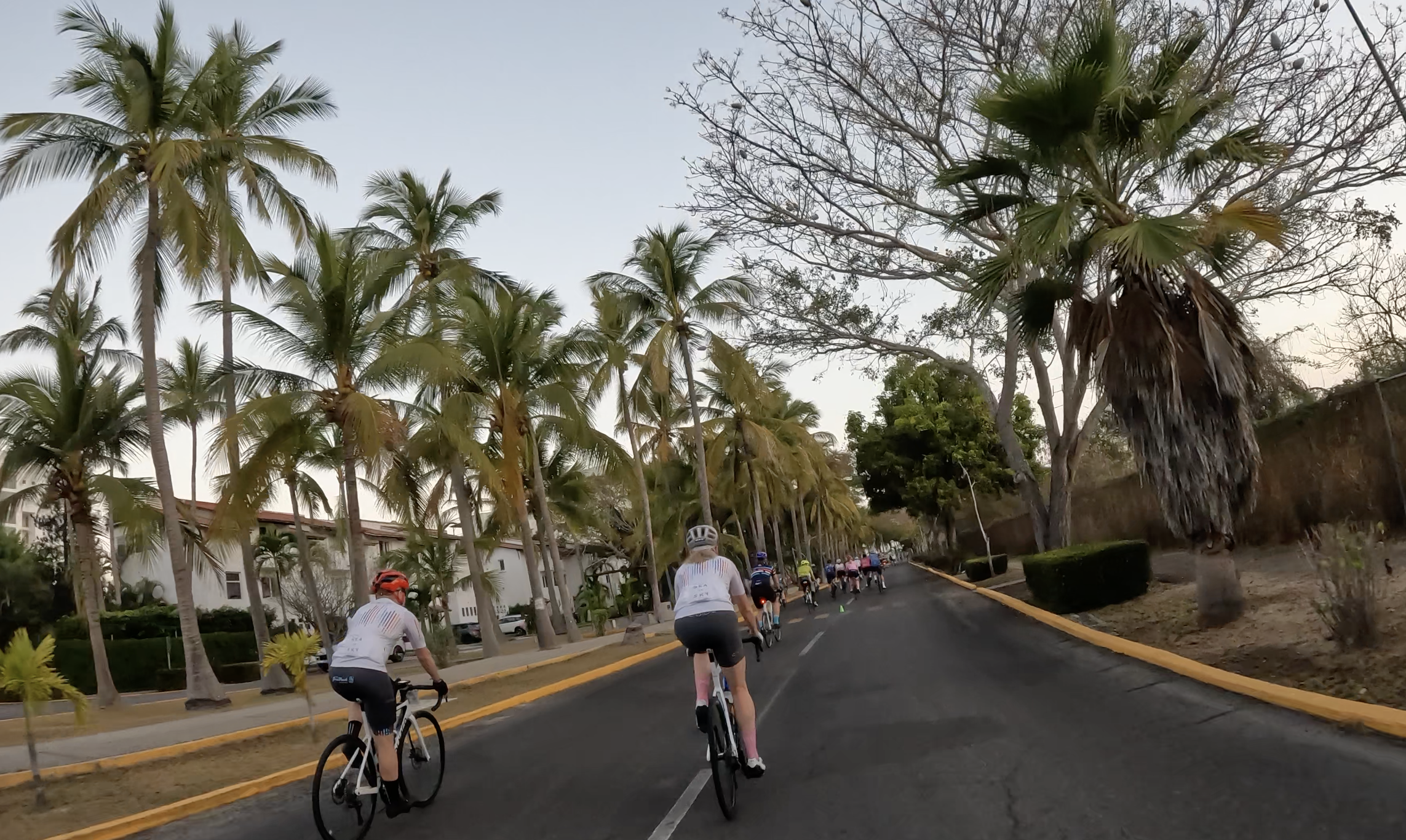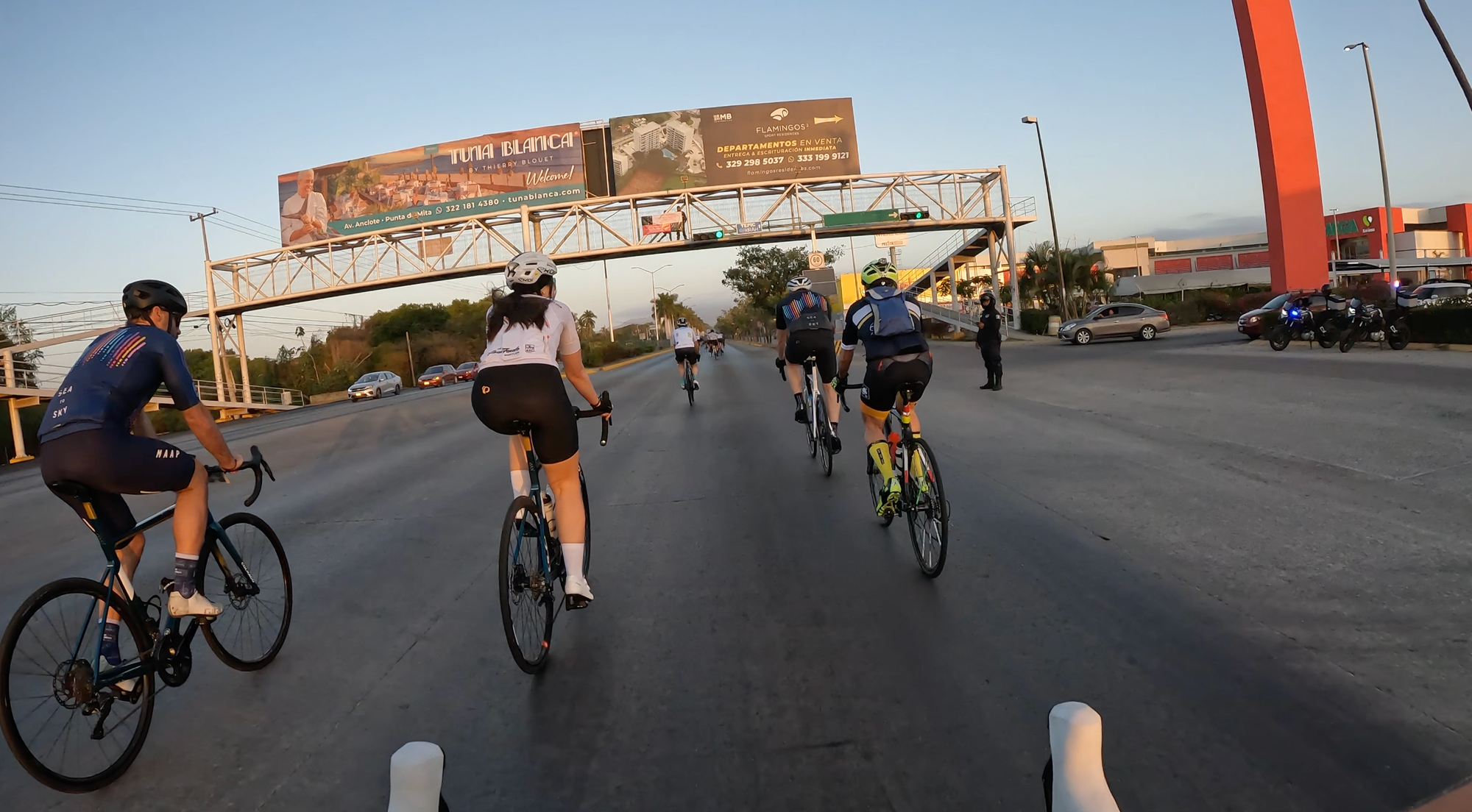 After some fist bumps and smiling at familiar faces, we rolled out. A slow, non-competitive rollout through resort roads with speed bumps that kept us slow and oscillating in waves. It felt more like a fun parade than a race, at least in those first couple of kilometres. I stuck with my more experienced buddies as we rode out of the resort and into the town of Nuevo Vallarta toward Bucerias, before they sped along at their pace and I eased into mine.