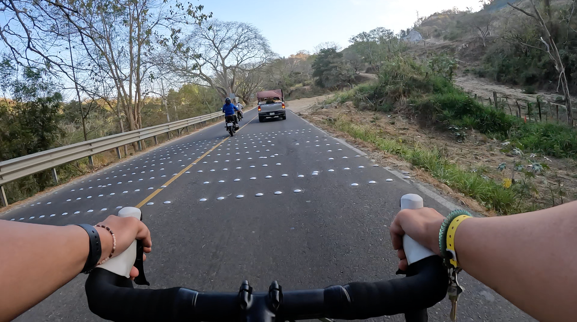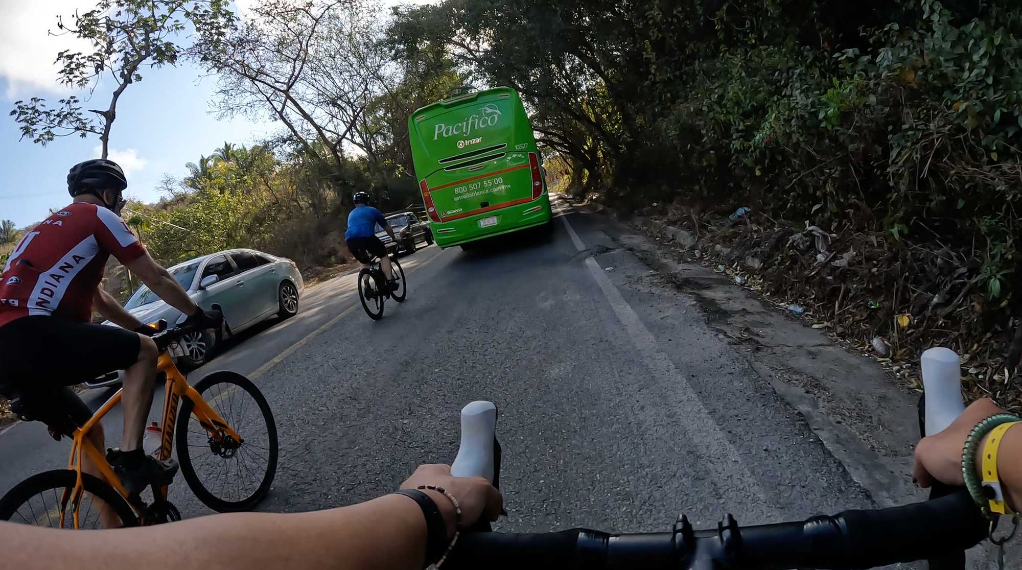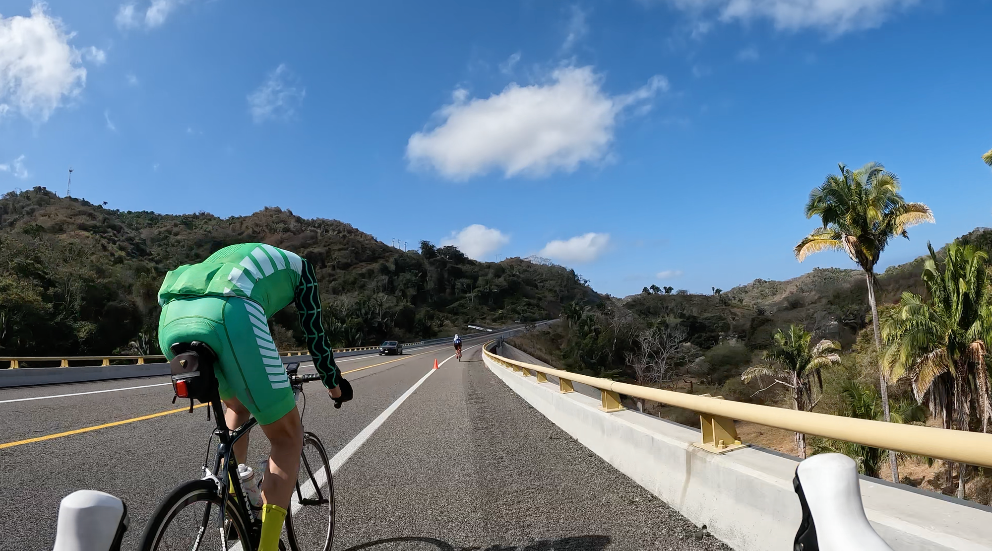 After some fist bumps and smiling at familiar faces, we rolled out. A slow, non-competitive rollout through resort roads with speed bumps that kept us slow and oscillating in waves. It felt more like a fun parade than a race, at least in those first couple of kilometres. I stuck with my more experienced buddies as we rode out of the resort and into the town of Nuevo Vallarta toward Bucerias, before they sped along at their pace and I eased into mine.
